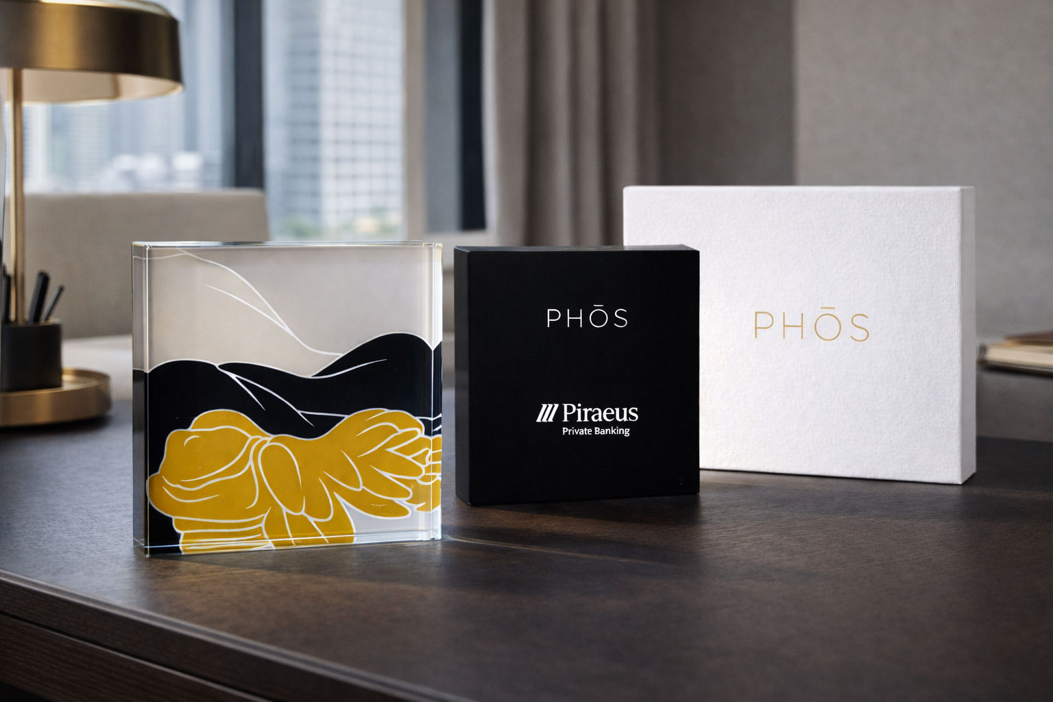 Each bespoke creation by Phos Collection is a deliberate expression of brand identity — shaped by symbolism, intention, and refined detail. Inspired by Greek heritage and a timeless sense of place, our pieces are designed for hotels, companies, shipping firms, and curated events, transforming each gesture into a statement.