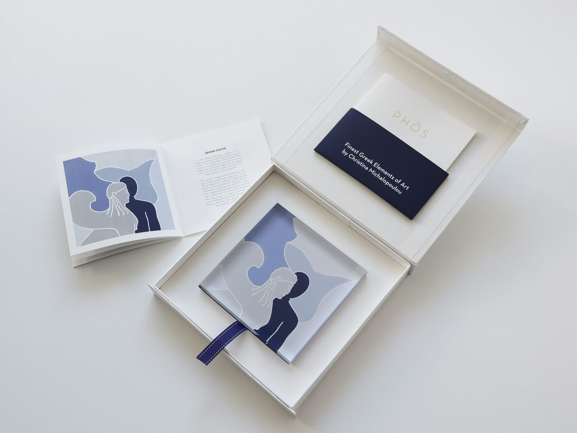 Finest plexi glass decoration items of desire in a minimalistic style, in a luxurious, handmade packaging of white box with an internal frame to protect the product. With a golden Phos logotype at the back.