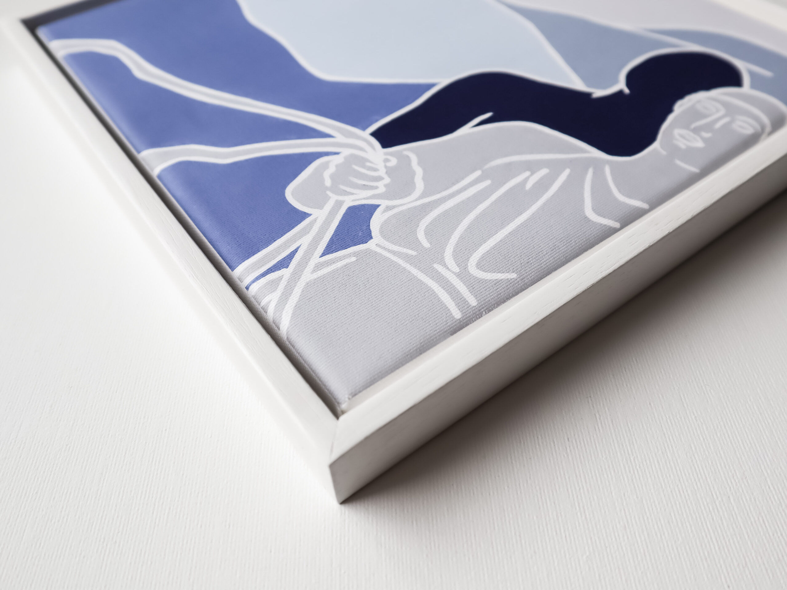 Supreme quality reproductions wall art canvas, signed and numbered by the Greek artist Christina Michalopoulou. Framed in a minimalistic wooden white frame 30x30 cm, the come in a luxurious, handmade white box with an internal frame to protect the canvas.
