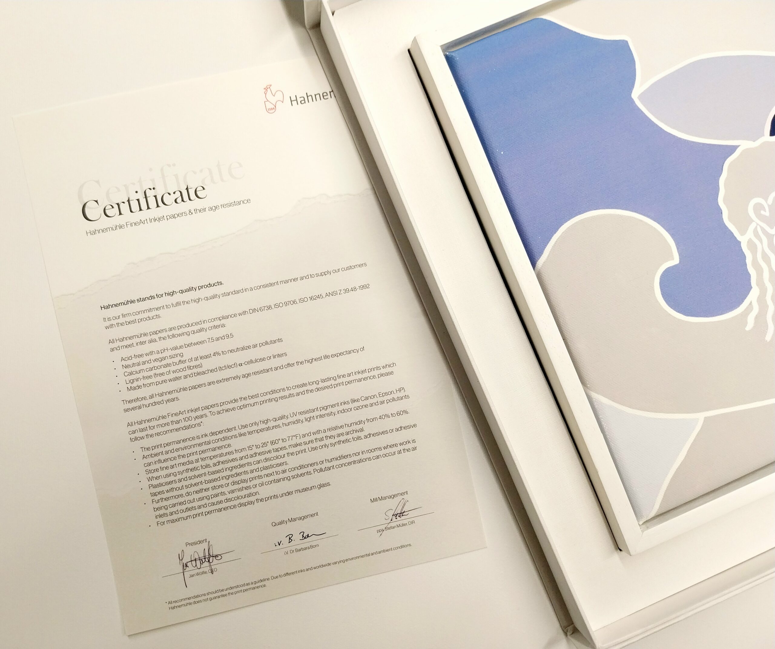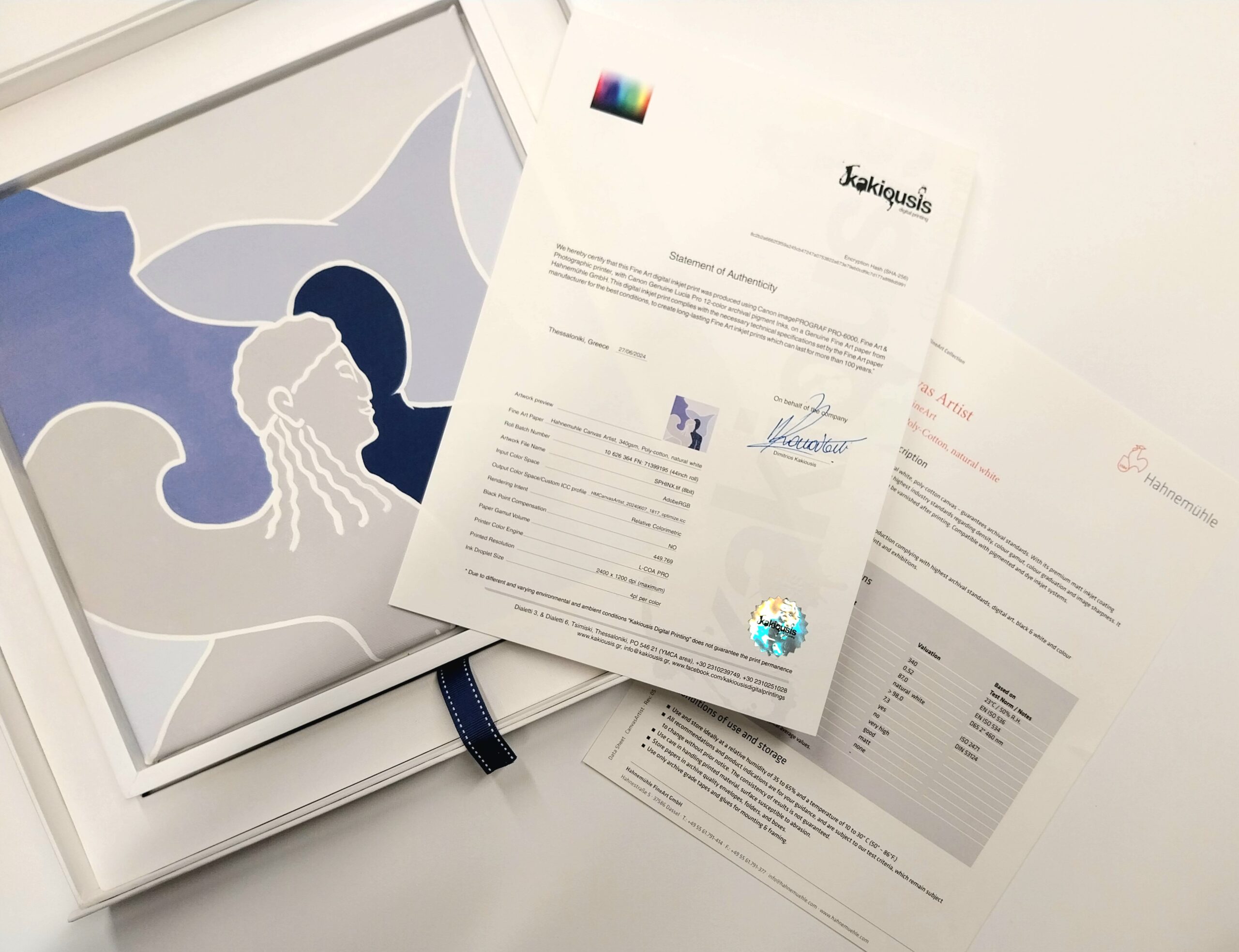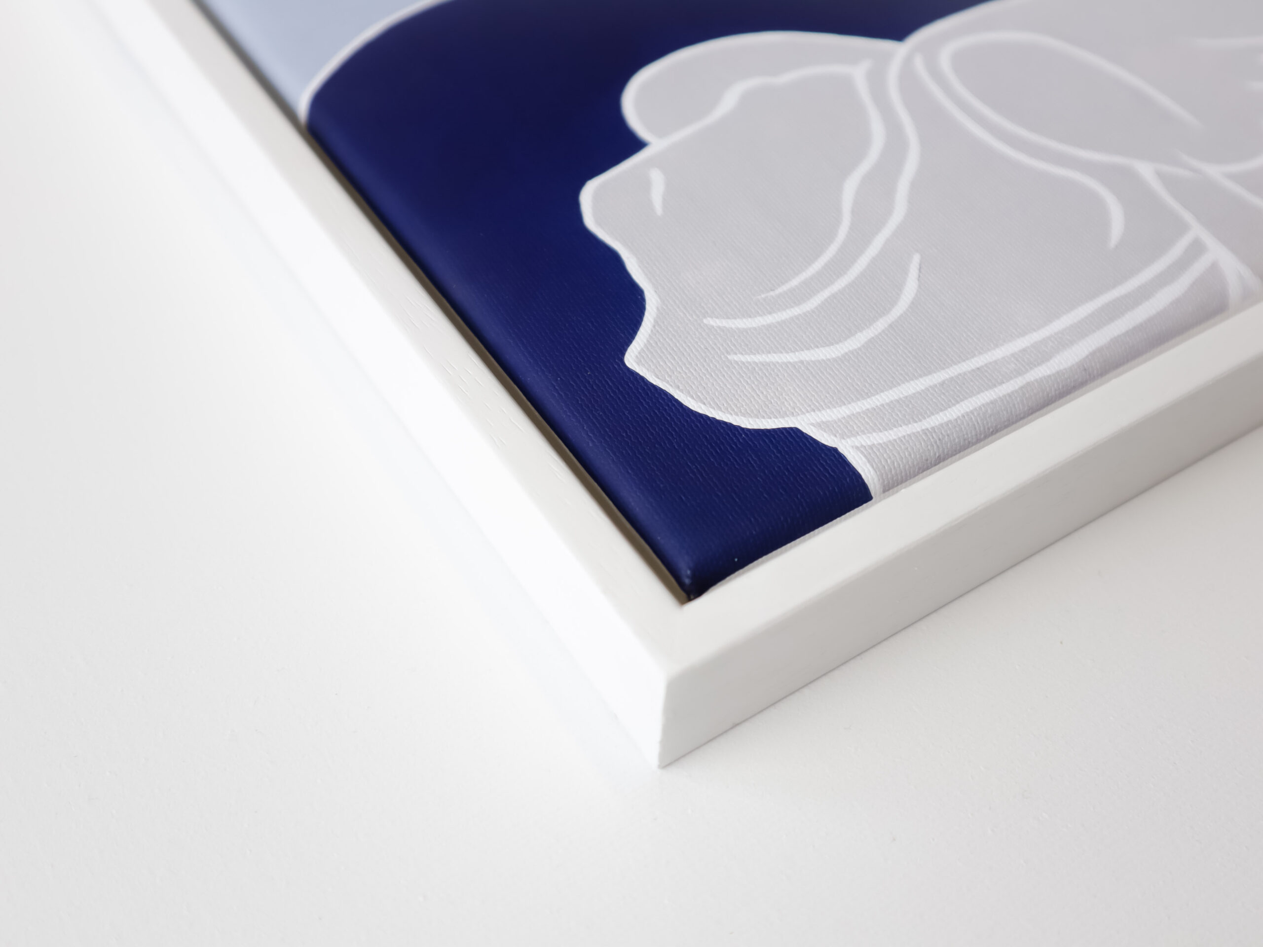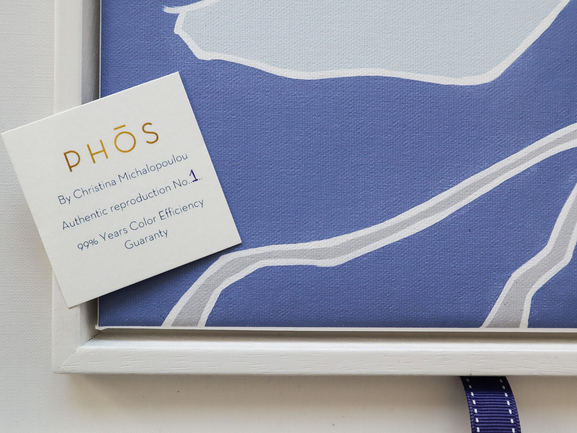 Supreme quality reproductions wall art canvas, signed and numbered by the Greek artist Christina Michalopoulou. Framed in a minimalistic wooden white frame 30x30 cm, the come in a luxurious, handmade white box with an internal frame to protect the canvas.